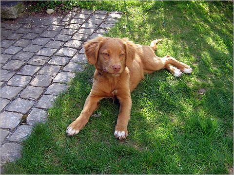 Sie lebt in Chur im schönen Bündnerland. Sie war die kleinste Hündin und ist es bis heute geblieben. Aber wie gesagt klein aber oho… Sie macht ihren Besitzern viel Freude auch wenn wieder mal der Toller bei ihr durchgeht. Einmal die Woche geht sie mit ihrem „Herrchen“ ins Agility und auch dort ist sie voll bei der Sache.